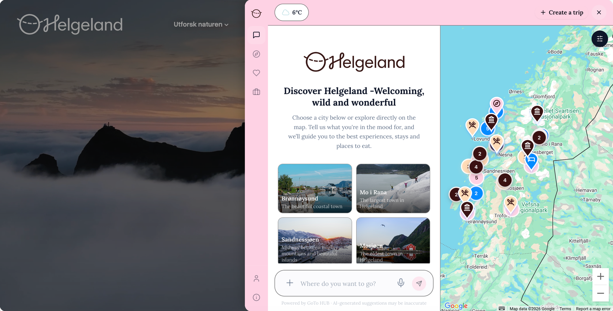 Visit Helgeland posisjonerer seg samtidig som en sentral datakilde for AI-baserte planleggingsverktøy, slik at Helgeland presenteres som konkrete, handlingsrettede svar når reisende søker – og leder videre til lokale produkter.